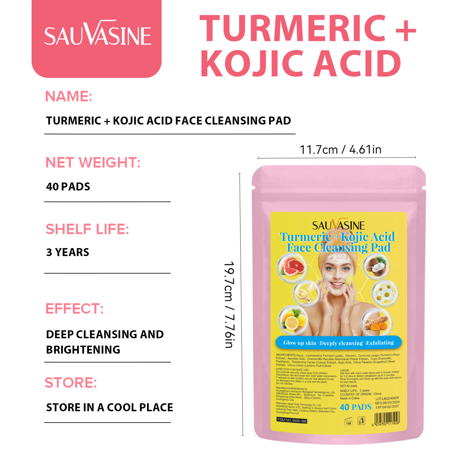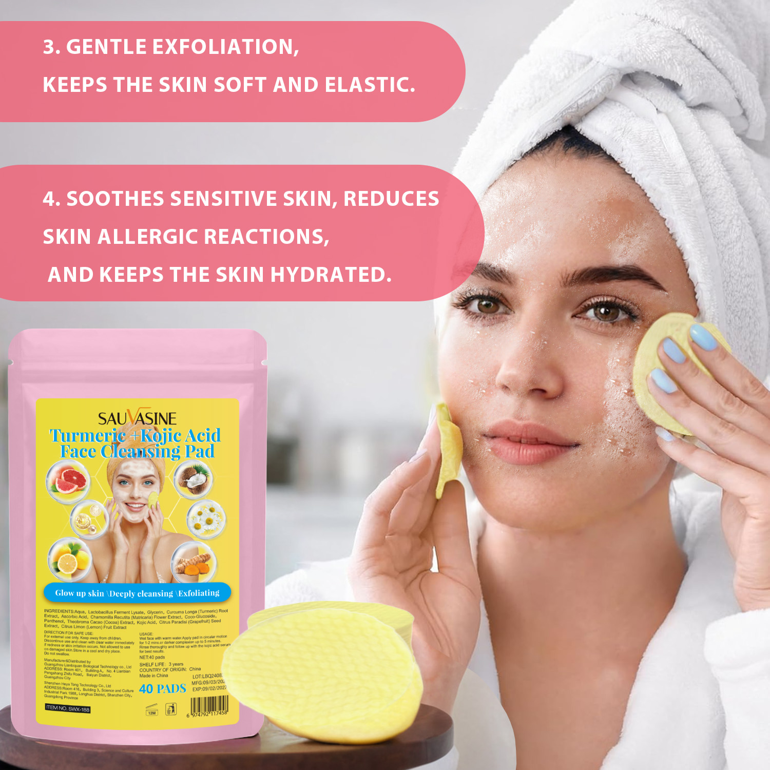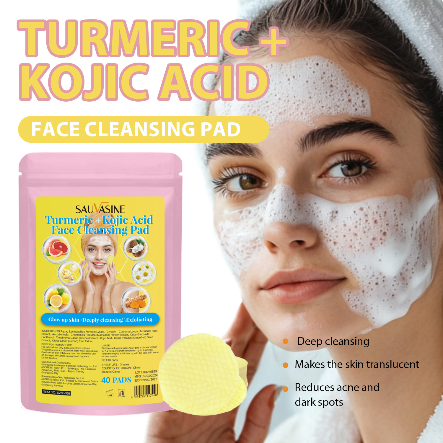 姜黄曲酸清洁棉片(袋装黄色)