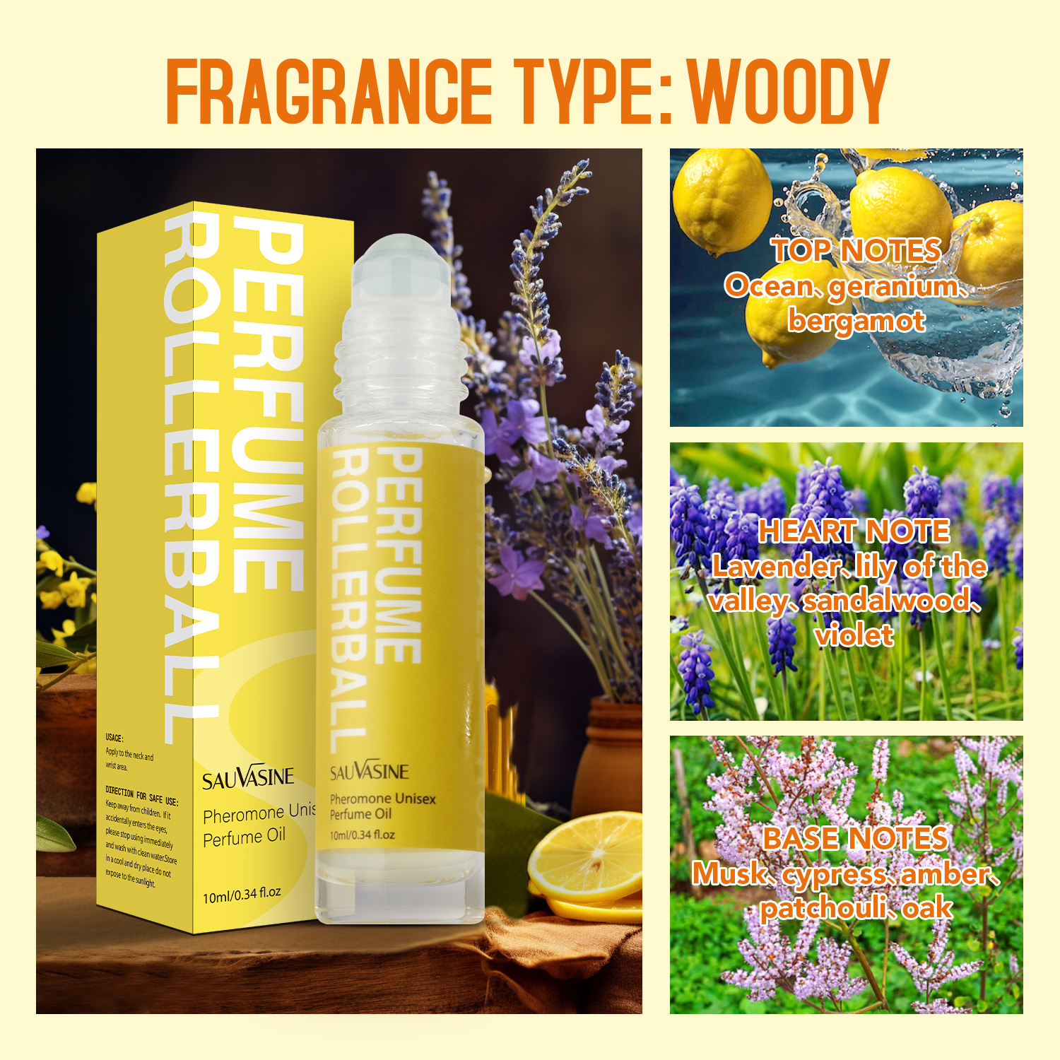 | 香味 | Fragrance Type:Woody Top Notes: Ocean, geranium, bergamot Heart Note: Lavender, lily of the valley, sandalwood, violet Base Notes: Musk, cypress, amber, patchouli, oak 香型:木质香调 前调:海洋、天竺葵、佛手柑 中调:薰衣草、铃兰、檀香、紫罗兰 基调:麝香、柏木、琥珀、广藿香、橡木 |